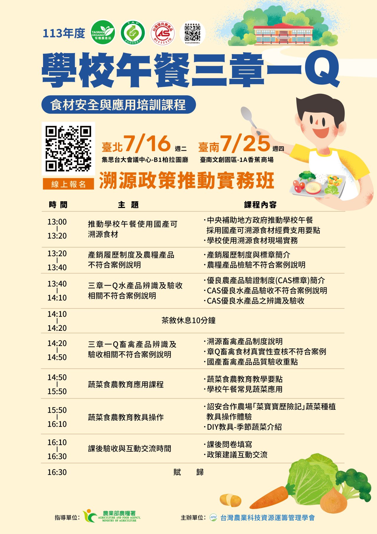 | 1、 | 溯源政策推動實務班(共計2場次),分別訂於北部與南部辦理。 |