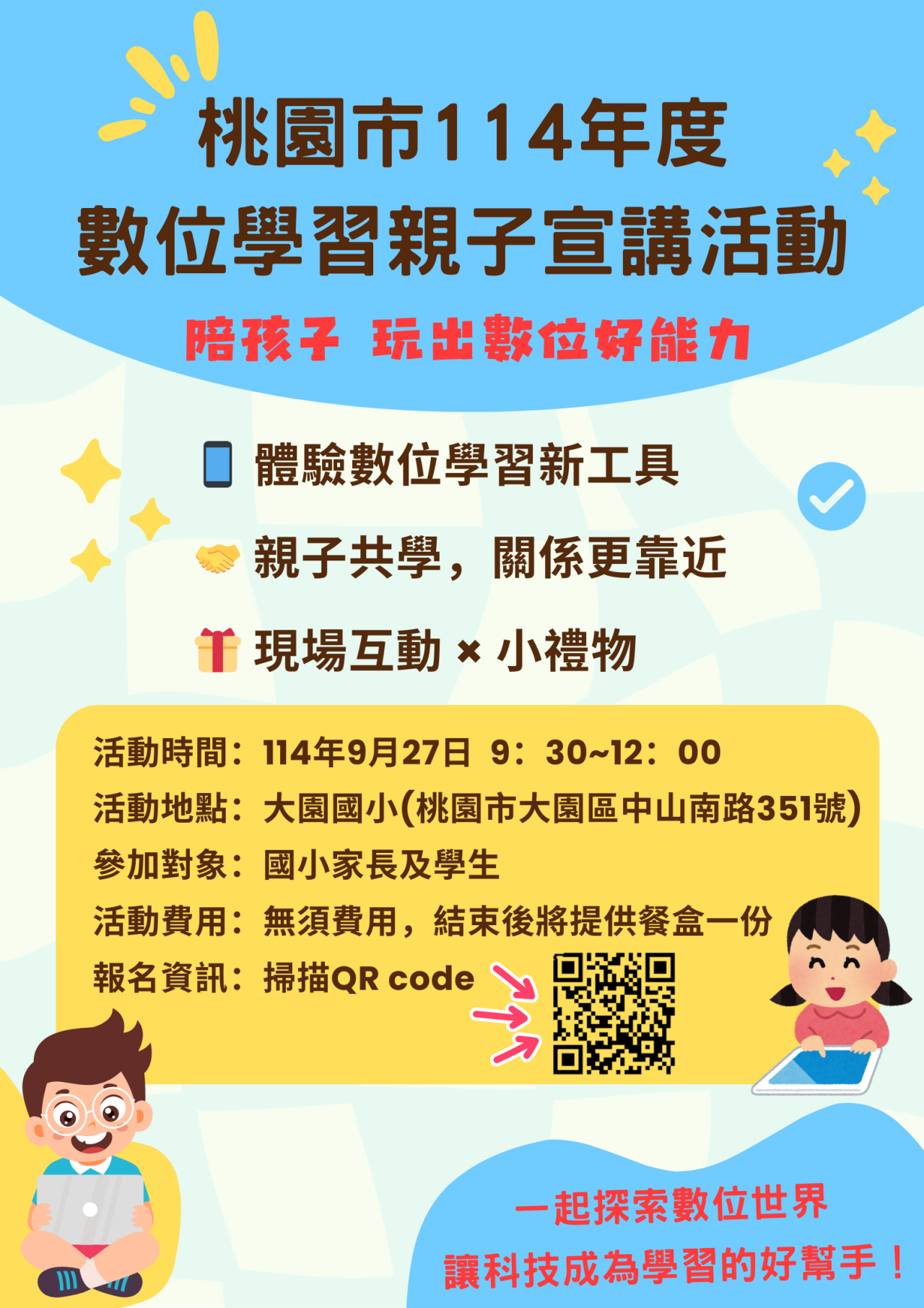(二) | 講師:台中市北屯國小葉晉源主任、台中市翁子國小楊宗榮主任、林鈺清數位學習家長講師。 |